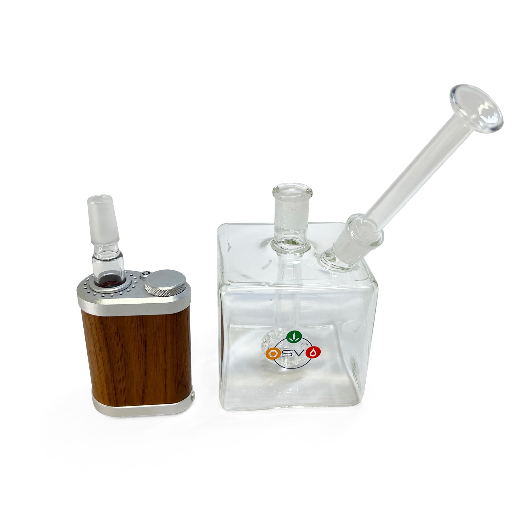 The Mini Cube bubbler is a very versatile glass bubbler, and it comes with a 14mm Female connection point, making it compatible with any 14mm Male Water Pipe adapter.