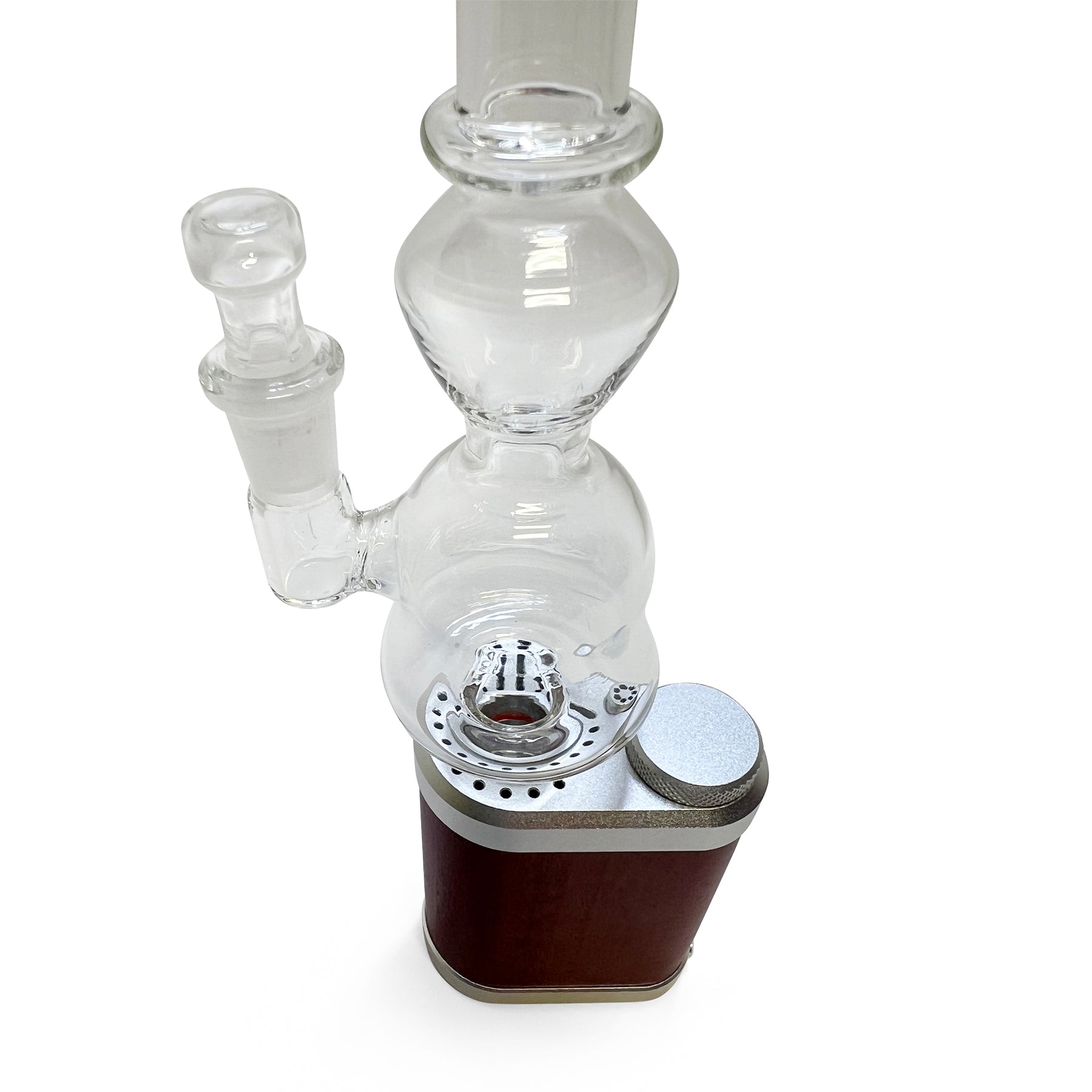 By adding a small chamber and the glass 'shotty', this bubbler mixes the best of both desktop and porotable bubblers! A must have for all Tinymight vaporizer enthusiasts!