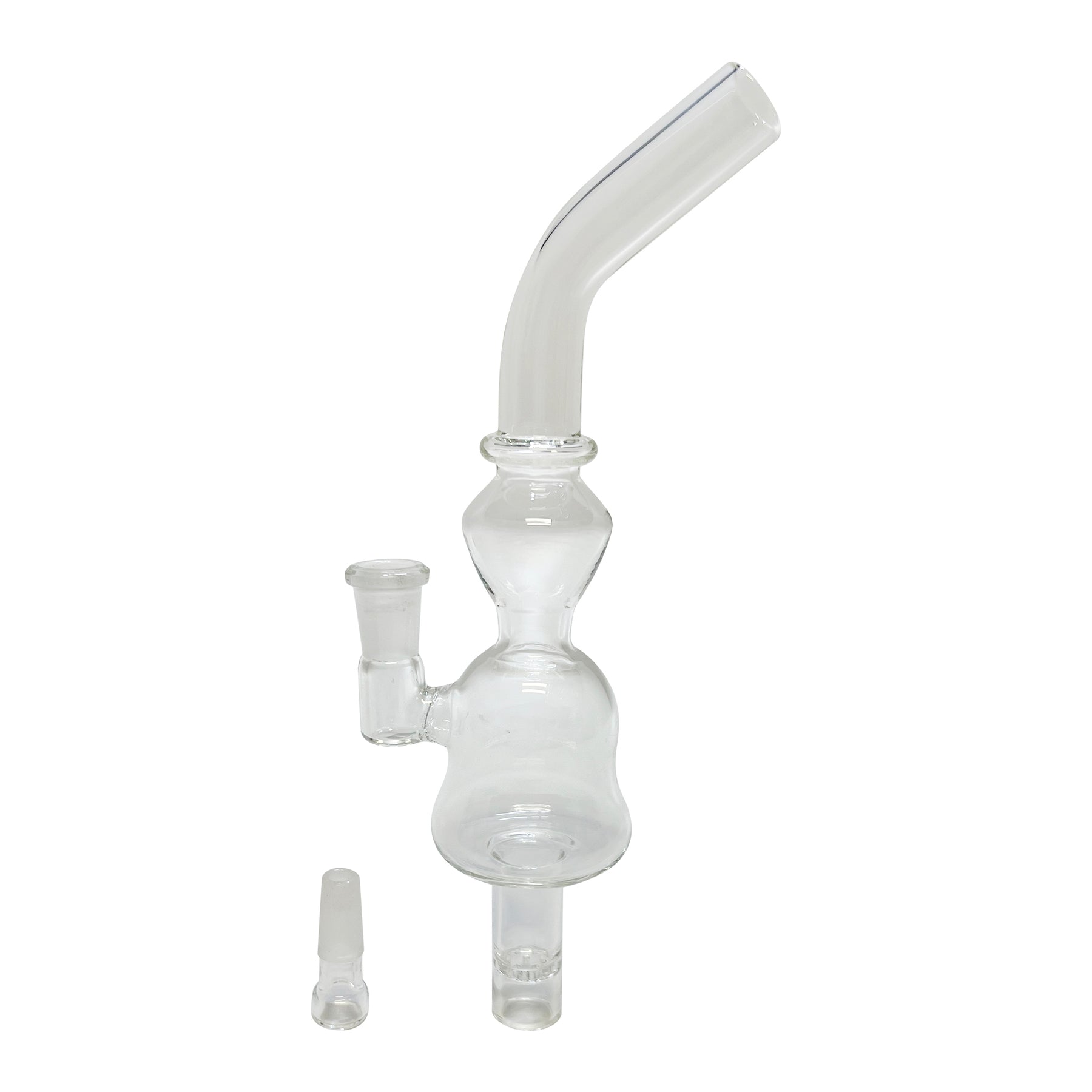 This bubbler is designed with a small chamber capable of holding huge clouds of vapor, and once ready to release, simply remove the glass 'shotty' stopper, to force the chamber full of vapor directly into the lungs!